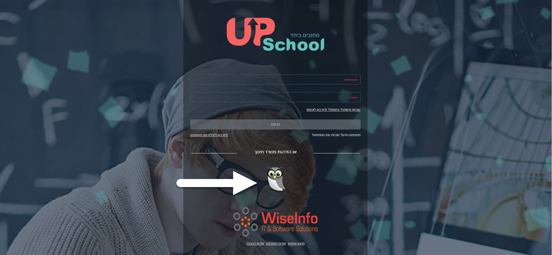 بعد الدخول للمنظومة على المعلم الضغط على رمز "البومة" في الاسفل حتى يقوم بتسجيل الدخول عن طريق اسم مستخدم وزارة التربية والتعليم الخاص به